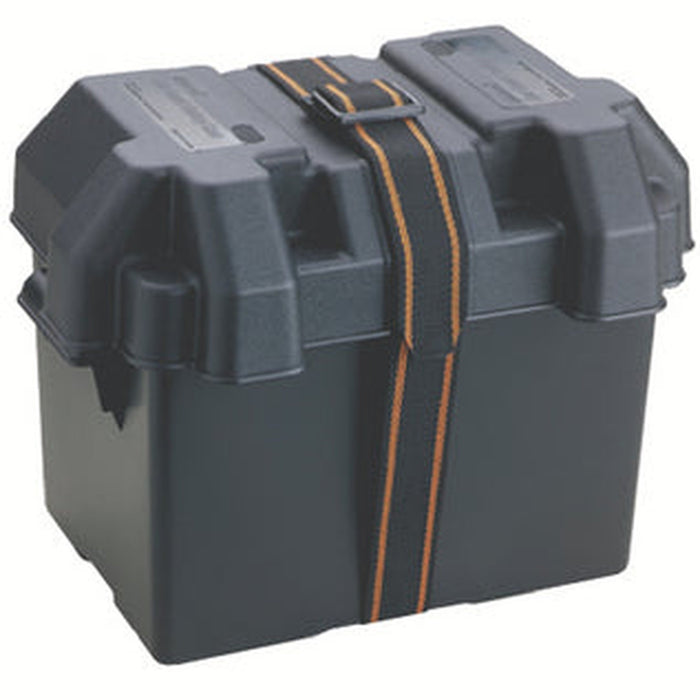 Non-vented. All battery boxes meet ABYC standard E-10 and U.S.C.G. Specification Number 183.420 as an OEM-installed battery hold-down system. Polypropylene construction for total acid resistance. Hold-down straps resist 350 pounds of force, nearly four times the U.S.C.G. requirement. Battery boxes are drop tested in temperatures ranging from -20°F to +120°F. Mounting hardware is included.
