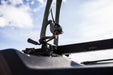 The Swagman STANDARD ROOF RACK is an effective and simple way to carry one bike on the roof of your vehicle. Installation and removal is straightforward, with no tools required. It fits square, round, and oval cross bars up to 3” wide. It’s also easy to use: take off your front wheel, place your forks and tighten the skewer, and then use the tie down strap to secure your rear wheel.